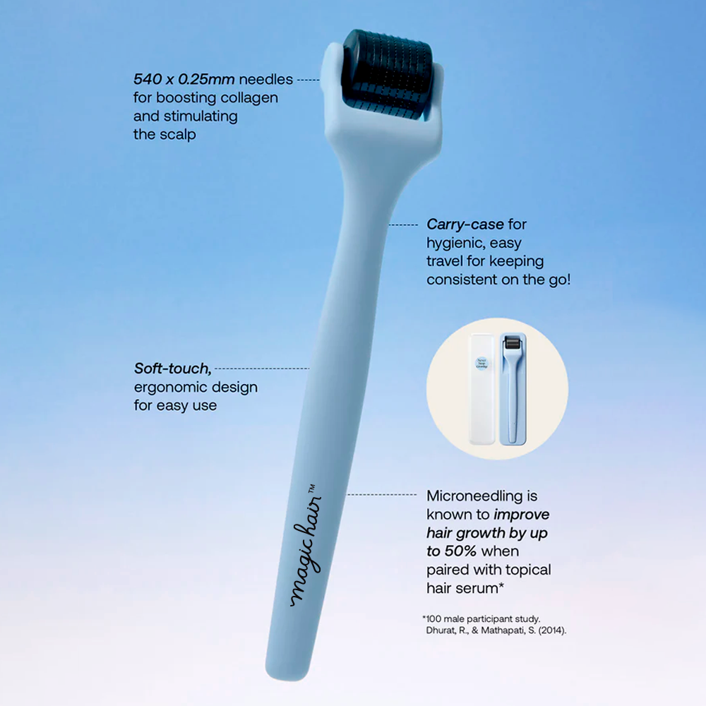 Notre Dermaroller avancé pour le cuir chevelu est au sérum de croissance capillaire ce que la base est à votre routine de maquillage : il stimule l'absorption et maximise les résultats !